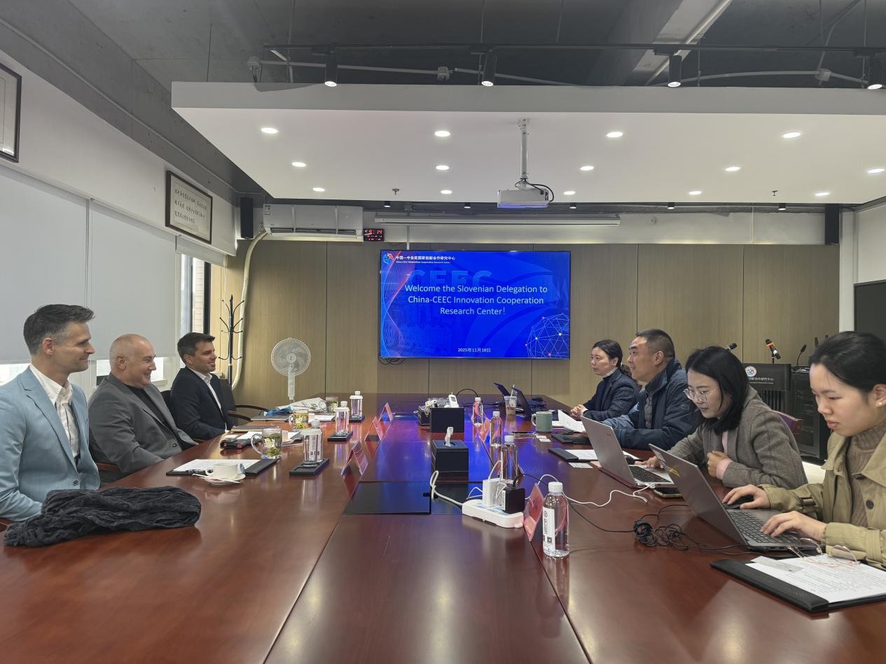 2025年11月18日上午,斯洛文尼亚阿尔玛特欧洲大学代表团一行访问中国—中东欧国家创新合作研究中心(以下简称“研究中心”)。双方进行了深入交流并就潜在合作进行了探讨。